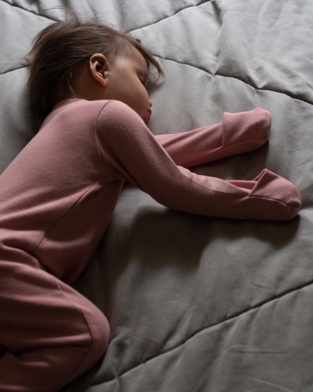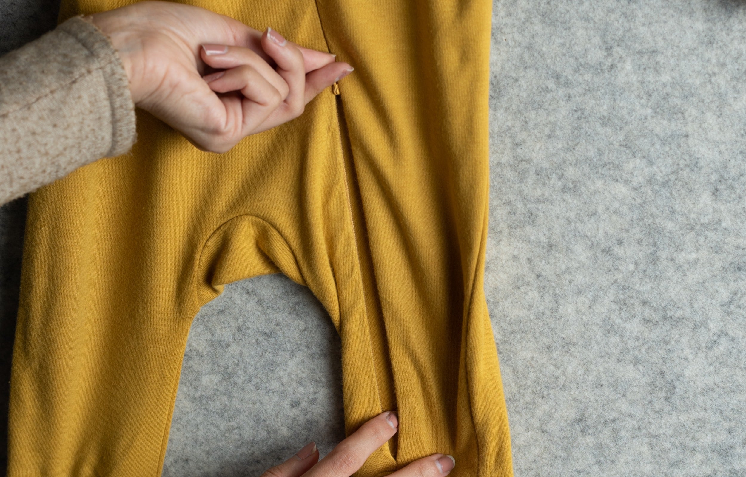 The zip at the bottom allows for easy diaper change while keeping the sleepsuit on.