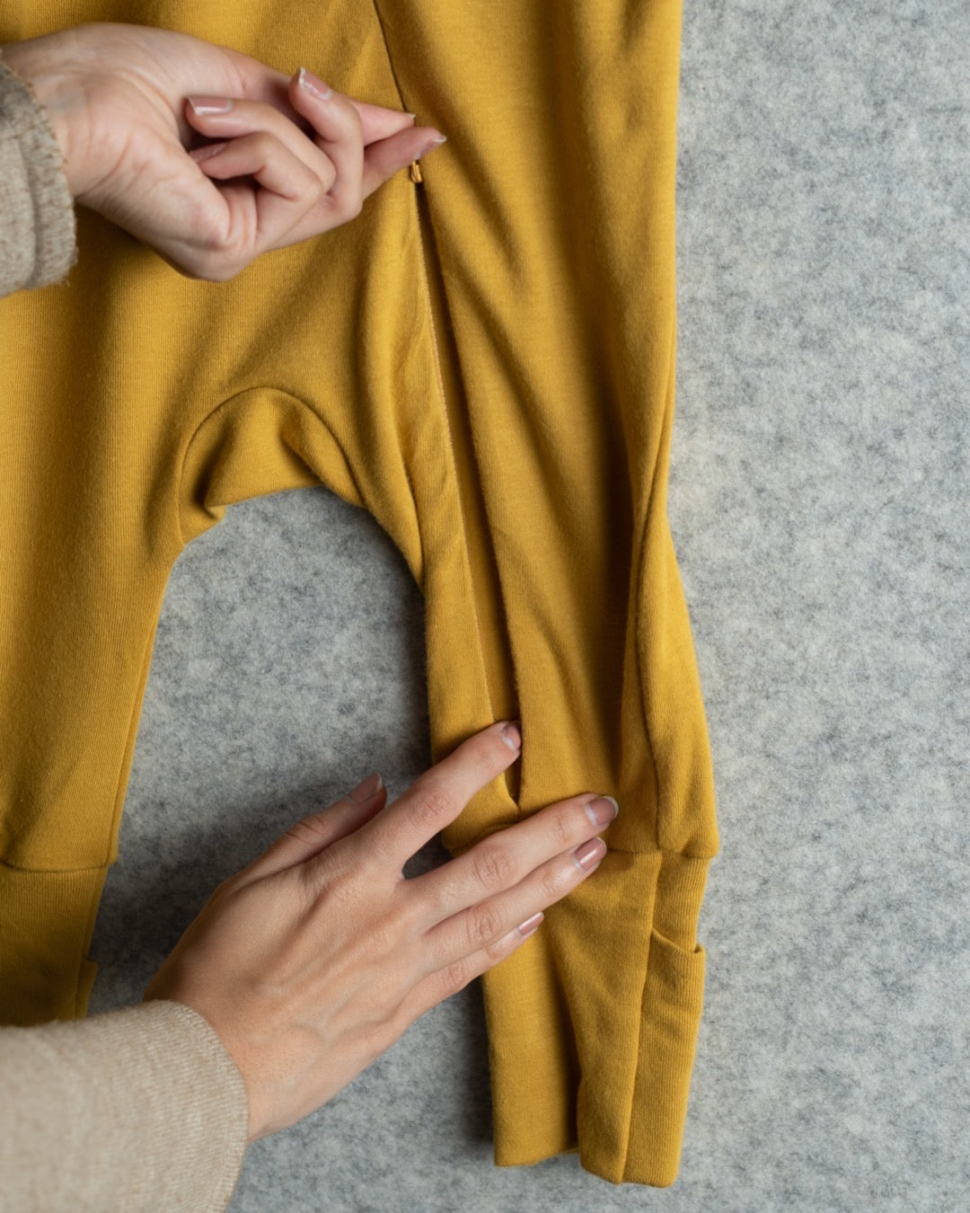 Function-first approach would mean putting everyday parent-baby interaction ahead of everything else. In our line of clothing you'll experience distinct features like double-sided zippers, expandable neck, detachable bib, roll-up waistband etc.